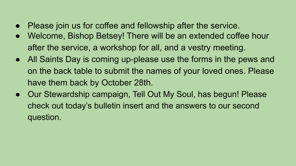 The bulletin for October 26, 2025 ~The Twentieth Sunday after Pentecost is available here.