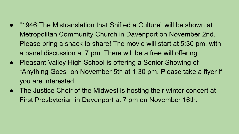 Previous services are available on our YouTube page under Saint Peters Bettendorf. Some may require a password.